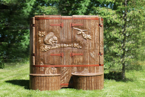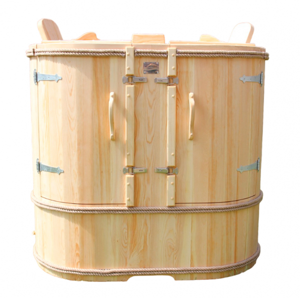 Двухместная фитобочка из кедра - это парная, в которой удобно принимать процедуры двум людям. Она оборудована откидными створками, дверцей, отверстием для головы и перегородкой (по желанию). Толщина стенок составляет 25 мм. Во время парения человек находится внутри кедровой бочки, а голова снаружи. Благодаря этому исключается возможность перегрева. Подлокотники из кедра и внутренние ручки делают эксплуатацию фитобочки более удобной.