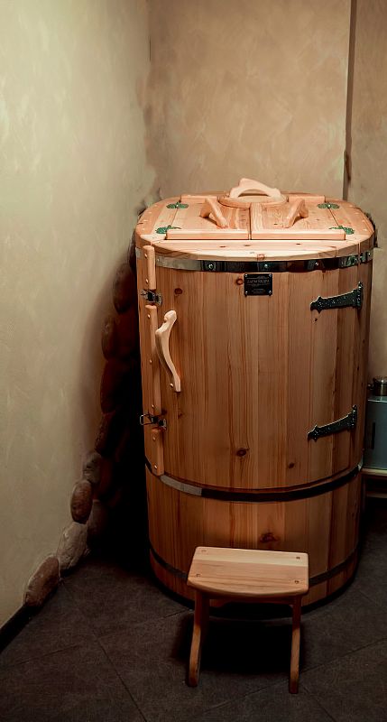Овальная фитобочка из кедра - это мини парная, которую можно использовать не только в спа-салонах, но и дома. Овальная модель более просторна и удобна в использовании. Толщина стенок составляет 25 мм. Она оборудована откидными створками, дверцей и отверстием для головы. Во время парения человек сидит внутри кедровой бочки, а голова находится снаружи. Благодаря этому исключается возможность перегрева. Подлокотники из кедра, встроенные ручки на створках и двери делают эксплуатацию более удобной.